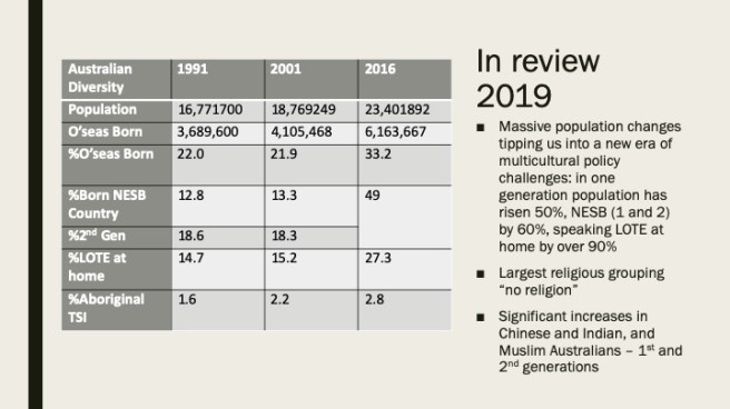 | Australian Diversity | 1991 | 2001 | 2016 |